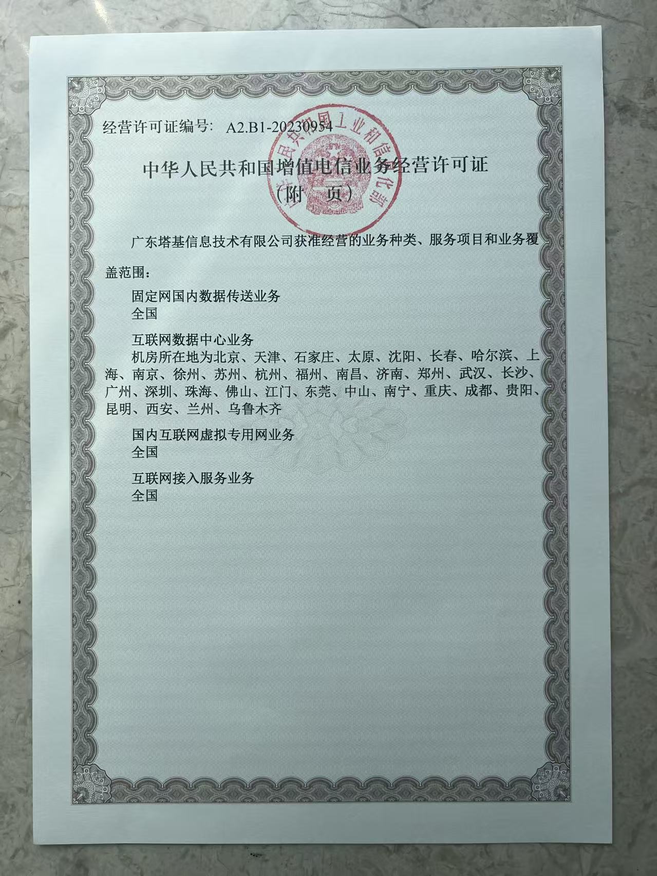 广东塔基信息技术有限公司(品牌名“塔基信息”)成立于2022年,是一家持有国家工信部颁发的全国增值电信业务许可的正规企业,具备在全国范围内经营数据专线、私有网络、互联网数据中心(IDC)及互联网接入(ISP)等业务的资质。 公司虽于2022年注册成立,但核心团队早在2008年就已进入通信行业,拥有超过十五年的网络基础设施规划、建设与运维经验。团队成员大多来自业内领先企业,擅长大型互联网平台的设计、搭建与长期运营管理。 成立以来,塔基信息始终专注于为企业客户提供稳定、高效的信息化基础设施与网络资源服务,涵盖云计算、数据专线、IDC托管及互联网接入等多个领域。我们以可靠的质量和专业的服务,与金融、智能制造、医药研发、互联网科技等众多行业的知名企业建立了持续合作关系。 我们高度重视服务保障,组建了由网络工程师、客户响应及项目实施人员组成的专业售后团队,核心人员均持有行业认证,并具备多年服务主流通信厂商、云服务商及基础运营商的经验。 我们融合了多家通信运营商的成熟技术与管理经验,积累了超过十年的高可靠性运营记录。目前,公司主要服务于移动大带宽客户,为客户提供独立高配置服务器及相关技术支持。